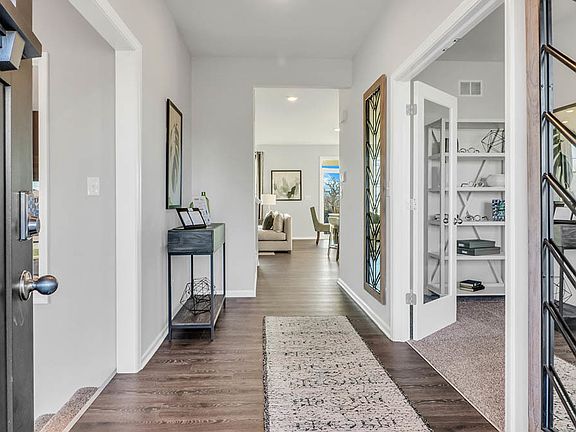 Imagine yourself at 1890 Canyon Creek Drive in Aurora, Illinois, a beautiful new home in our Wheatland Crossing community. This home is ready for a fall move-in! This large, scenic homesite includes a front porch with brick facing surrounding the garage and fully sodded yard. This Henley plan offers 2,600 square feet of living space with a flex room, 4 bedrooms, 2.5 baths, 9-foot ceilings on first floor, and full basement. Entertaining will be easy in this open-concept kitchen and family room layout with a large island with an overhang for stools with designer cabinetry. Additionally, the kitchen features a walk-in pantry, modern stainless-steel appliances, quartz countertops, and easy-to-maintain luxury vinyl plank flooring. More flexible space is waiting upstairs in the 2nd-floor loft, offering unlimited potential to suit your needs. Enjoy your private getaway with your large primary bedroom and en suite bathroom with a raised height dual sink, quartz top vanity, and walk-in shower with chic wall surrounds and decorative glass shower doors. Convenient walk-in laundry room, 3 additional bedrooms with a full second bath and a linen closet complete the second floor. All Chicago homes include our America's Smart Home Technology, featuring a smart video doorbell, smart Honeywell thermostat, smart door lock, Deako smart light switches and more. Exterior photo of actual home. Interior photos are of similar home and model home. Actual home built may vary
