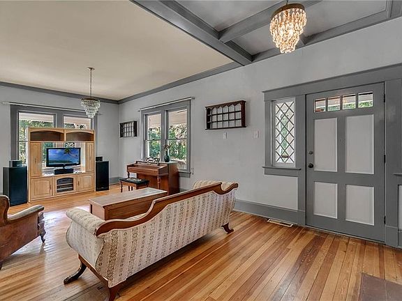 Architectural craftsmanship and historic detail - this is the REAL DEAL. Built in 1910, this Craftsman style house features tons of original woodwork throughout. The grand entry includes a crystal chandelier (1 of 4 throughout the house), coffered ceiling, fireplace and front door with diamond paned side lights. The dining room has bay windows, built-in china cabinet and columns with pony wall leading to the living room. French doors with large sidelights and transom windows are your entry to the 27' x 12' sun room. There are 2 bedrooms and full bath located off the spacious central hallway on the first level and 2 more bedrooms and full bath upstairs. The oversized rooms create a stately and palatial feeling - you will never feel cramped in this home! Exterior features include a large wrap around porch, an open pole barn complete with an enclosed workshop and RV hookup with sewer and electric, a gazebo and 5 acres to create your dream landscape and gardens. This home has tons of potential and just needs some TLC to be taken to the next level.