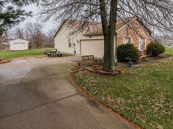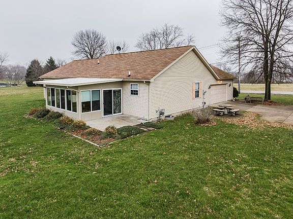 0.986 acres You must check oujt this custom built ranch featuring a side entry garage situated on a large flat lot.This home offers vaulted ceilings in the kitchen and dining area, vaulted ceiling in the living room with fireplace and walkout, large sunroom, detached garage offering ample space for storage or make it your own shop. Newer roof,furnace and air conditioner.Huge unfinished basement.
