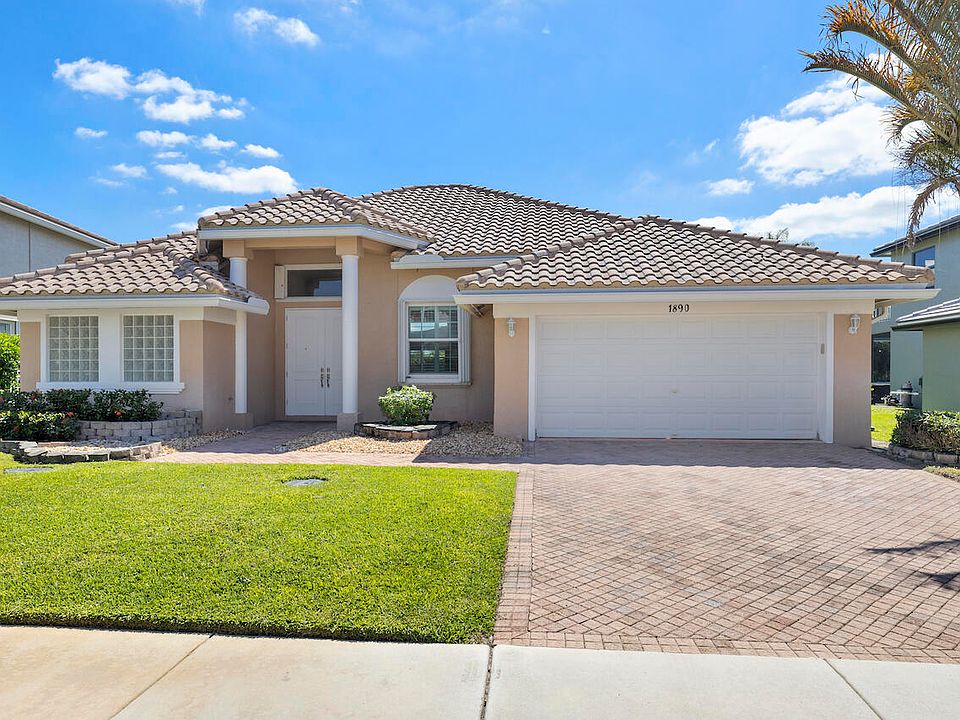 Come see this beautiful, open concept home in one of Wellington's nicest communities! This home offers a 3-way split floor plan, updated island kitchen, newer AC, newer hot water heater, 2016 barrel tile roof, accordian shutters, interior plantation shutters, crown moulding and a 16kW Genrac generator. Also important to note, the pool was retiled and resurfaced within the year, the interior was painted and lighting fixtures replaced. A brand new washer and dryer was installed, along with new rock and exterior landscaping. All of this in a gated neighborhood with low HOA, zoned for the very best schools in the county. Also located very close to two country clubs with golf, dog park, shopping, restaurants, and equestrian activities.
