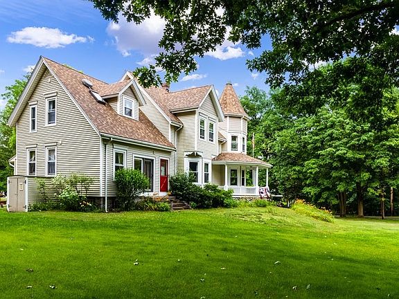 Envision yourself sitting on the wraparound porch. There is such charm and character throughout this amazing home. Open the front door to a foyer with its custom winding staircase and skylight, large living room, dining room with hardwood floors, family room that leads to a screened in porch that relaxes you the moment you step into it. Kitchen has a full separate pantry for storage and a slider overlooking the yard. Laundry is on 1st level, as well as a mudroom. Take the back or front staircase to the second floor, which boasts 4 bedrooms, full bath and a unique back foyer with built ins. The detached two car garage has extra workspace. The yard has many mature plantings that bloom throughout the season and the flagpole in the front yard completes the look. Besides all the charm a new septic system was installed in Dec 2019, solar panels heat the hot water, updated electric and a newer roof. Come take a look at this classic beauty that stately sits on a stonewalled corner lot.