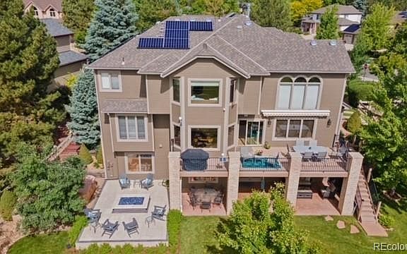 Bring offer!! Owned Solar! Custom Broomfield Country Club home is a must-see! Large private lot, Backs to the golf course, located on a quiet cul-de-sac. Large formal entry w/bridal staircase & cathedral ceilings. Seller has added many new features to the home.Newly refinished hardwood flooring, new primary bath tile flooring, new glass shower door, toilet, faucets, Motorized privacy blinds, Solar shades, Granite counters in most baths & kitchen, New Sinks, Lighting & New Pella sliding door with screen.Gourmet kit boasts Level 3 granite countertops and island with backsplash, new wood cabinets, newer appliances including wall ovens, gas cooktop, eat-in bar & eat-in kitchen area and huge walk in pantry with shelving! Floor to ceiling windows; main floor office with built-in shelving; upgr & tiled bathrooms throughout the home. New Bali Blinds, custom 14 ft fireplace with stone from Telluride and reclaimed barn wood mantle with large gas cozy fireplace. The professionally fin. walkout basement has media room, wet bar, fitness room, surround sound media room, extra area for 2nd office & a large storage area. Stamped concrete patio around patio and Belgrade Porcelain Pavers around the fire pit. 6.2kwh Peak Solar Power system (modern Solaredge inverter and 17 x modern LG 375w panels), 30 AMP Tesla wall connector in garage. Natural gas fire pit with custom fabricated brass burners. Two outdoor natural gas hookups for grills. 2 zone hvac, epoxy garage floor,Tankless hot water system for whole house mily room/kitchen, 3/4 b. New front door and garage doors.New exterior paint, irrigation with Rachio smart controller. Large 3 car garage with New insulated garage doors with Wifi control. This home is situated in a low tax and low hoa . Close to shopping restaurants, bike/hiking trails, Paul Derda and Broomfield Community Recreation Centers and the Broomfield Bay. Radon Mitigation & Hot tub included. Walking distance to Broomfield High & Aspen K-8.