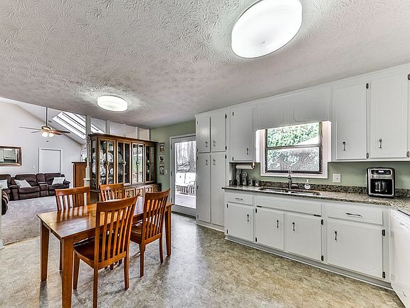 Adorable 4 bedroom home on a quite 1 acre lot. 2 Master suites, split bedroom plan. Huge master suite with her and his closet, dual vanities. Cozy fireplace and bay window in greatroom open to the newly renovated eat-in kitchen with granite counters. A den or formal dining room. Door leading out to the fenced private backyard. Huge entertaining deck. Finished terrace level could have 5th bedroom or office and a media room, has a half bath. Lots of storage. oversized 2 car garage. Great Schools. House is move in ready!