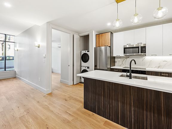 Floor-to-ceiling windowsModern cabinetryClean linesIn-unit washer and dryerFull-sized stainless steel appliancesGenerous closet spaceWarm wood flooring