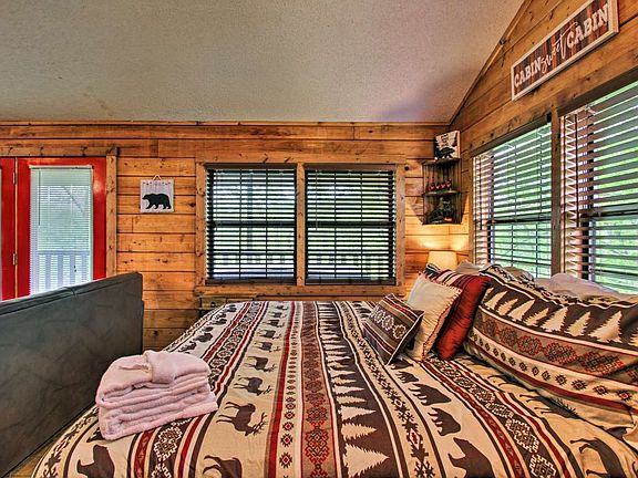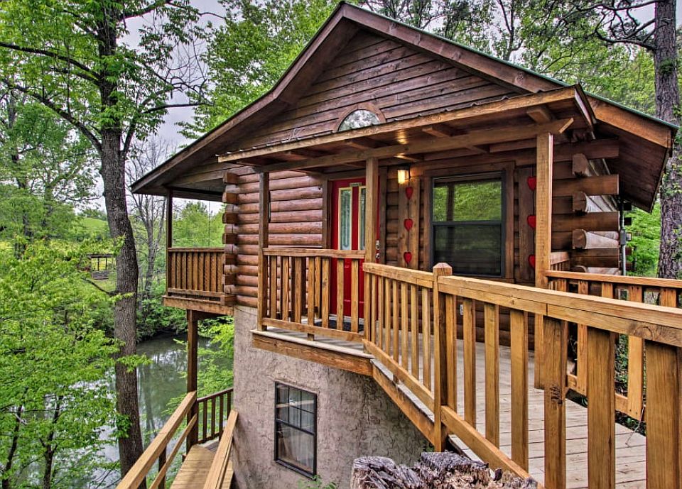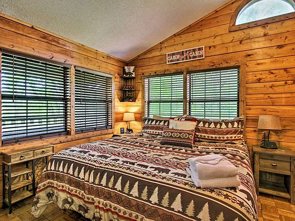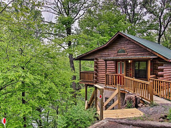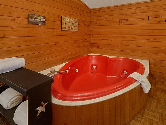 Located in the beautiful Sevierville area of the Great Smoky Mountains, you'll find "River Rush," a charming and affordable 1-bedroom cabin by a river! Not only does this honeymoon cabin provide river views and a peaceful spot to relax during your vacation, but it also keeps you minutes away from the biggest attractions in the Smokies! In fact, Downtown Pigeon Forge is only 7 miles away from this rental. Gatlinburg and the Great Smoky Mountains National Park are only a short drive further! Once the sun sets on another beautiful day in the Smokies, you can look forward to unwinding together around the fire pit at this peaceful retreat located on the banks of the West Prong of the Little Pigeon River. Inside, you'll find a welcoming, studio-style floor plan with rustic features like the large stone electric fireplace. "River Rush" also comes complete with a king-sized bed and a heart-shaped jacuzzi tub for relaxing in the evenings. This rental also provides useful amenities like WiFi Internet, a washer & dryer, and a kitchen & dining area for making cost-effective meals during your stay in Pigeon Forge. Outside, you can also make use of your cabin's gas grill for your very own Smoky Mountain cookout. To enjoy your cabin's beautiful setting, simply step outside to the deck with a river view to take a soothing soak in the warm waters of the hot tub. You'll love spending time with your sweetheart with the peaceful sounds of the river in the backdrop. With a king bed and a sleeper sofa, this cabin can accommodate up to 4 guests in comfort.