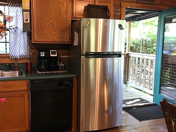 This cabin sits right on the river and has proven rental numbers. This 3 bed 2 bath log cabin is newly stained and updated with Stainless Steel Appliances. You will love sitting on the rear deck watching the geese swim by while soaking in your hot tub. Spacious and accommodating you will not want to miss out on this one.