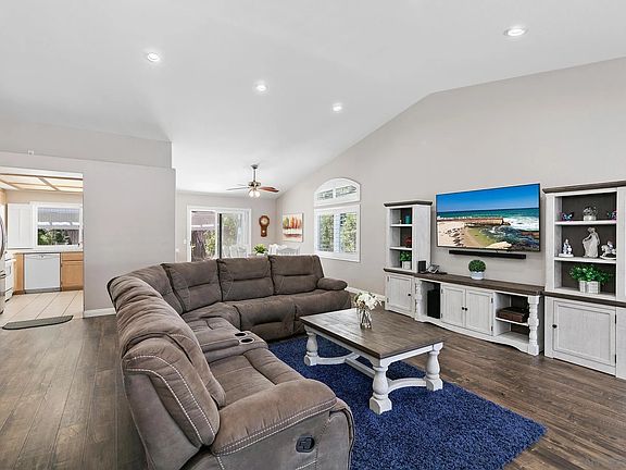 Located near the heart of Alpine this 4 bedroom 2 bath single story home features a spacious great room, vaulted ceilings, recessed lights, custom shutters & a 3 car garage. 4th bedroom is off of Master Suite. Paid for solar system. Building behind the main house has electrical service & is currently being enjoyed as the man cave. Low maintenance landscaping w/automatic irrigation. 30 ft flag pole with 8'x12' flag. RV gate & large back yard w/lots of possibilities for a pool or RV parking.