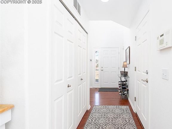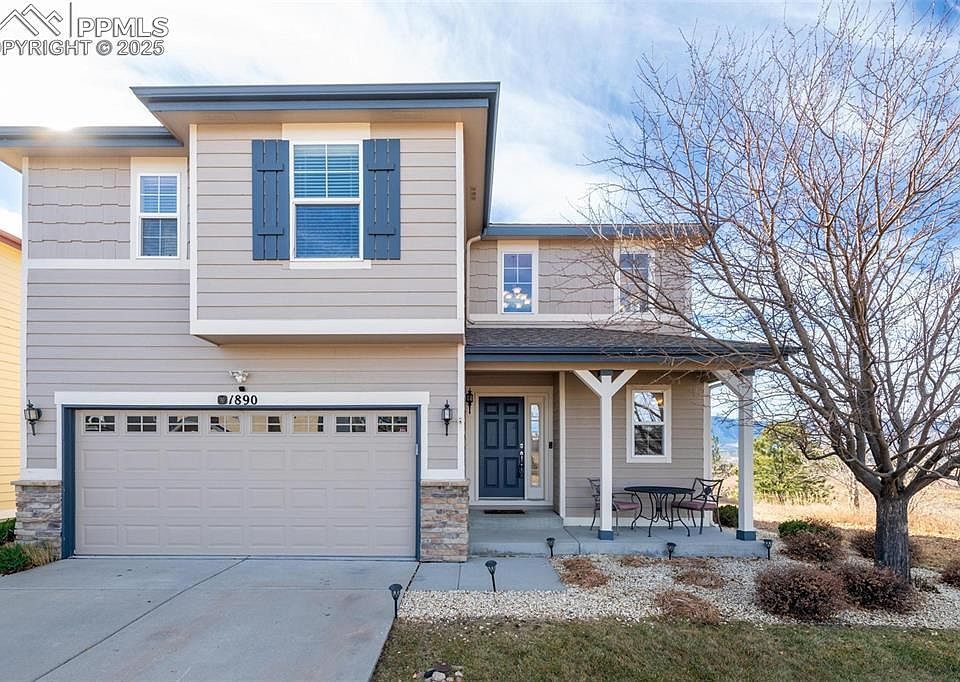 Located next to open space and just minutes from schools, shopping, parks, and easy access to I-25, this beautifully updated home offers the perfect blend of comfort and convenience. Featuring 3 bedrooms, 3 baths, and a two-car garage with Pikes Peak and mountain views, this property is designed for both everyday living and effortless entertaining. The main level showcases an open great-room layout that includes the kitchen, dining area, and living room. Upstairs, the expansive primary suite offers a cozy sitting area separated by a 3-way fireplace and a luxurious 5-piece bath with double vanities, a soaking tub, and a free-standing shower. Two additional bedrooms and a full bath complete the upper level. The HOA covers lawn care, snow removal, and trash service, giving you more time to enjoy the miles of nearby hiking and biking trails less than half a block away. Ideally situated near shopping, restaurants, the Air Force Academy, and major commuting routes, this home provides exceptional convenience in a highly desirable location.
