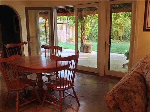 Here we have a gorgeous custom built home, with so much space you can get lost in it! It has a quaint country feel, yet is just minutes away from the desirable Sonoma Square. It also has a fully loaded studio unit, detached and at the back of the house in the rear yard. The studio has a full bath (shower only, no tub), kitchen area has sink and refrigerator. The large home is basically two levels with 3 large bedrooms on the top floor, a large, full bathroom with custom tile work throughout, a tile shower stall and separate bathtub - plus plenty of counter and cabinet space! There are three living areas for dining, living room and entertaining area. The upstairs hallway has open archways in the walls. Fun, light open kitchen, that comes equipped with all stainless steel appliances - dishwasher, double oven, refrigerator and stove, wonderful spacious counter space and cabinets throughout. Walk downstairs and you will enter an expansive living area with cement flooring, bar area with sink and dishwasher, one huge bedroom with 2 open walk-in closets spaces, extra bonus room, perfect for an office/spare room. The bathroom is one master bathroom with large tub, separate shower, sink and vanity area. Laundry area with washer/dryer hookups only, as well as cabinet space. Entry way to the enclosed back yard, the garage/storage area and the front area. The backyard is just a relaxing secluded delight...area with planter boxes and other planting desires, patio areas with pool table, large outdoor table, lawn area and lush trees and plantings. Ceiling fans throughout, 2 fireplaces, one upstairs and one downstairs. 1 year lease, available 9/5/2015. Call for an appointment to view. Please do not disturb tenant, all utilities paid by tenant, gardening included in the rent, ample parking space, NO PETS. Washer dryer hookups only. Extra detached studio. Gardening included in rent. No pets!