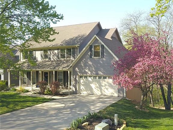 This 3384 sqft colonial home has new windows, huge rooms, upstairs laundry, 2 fireplaces, 4 bedrooms with 3.1 baths. The basement is finished with a walk-out to a screened-in porch to observe the many species of birds, such as woodpeckers, blue birds, red birds, and finches. The owner's closet has been expanded, doubling its size with new laundry room. The kitchen was remodeled. The upper & lower 18'x15' decks were replaced and expanded. New HVAC 2022. Owners' bathroom remodeled with new tub and shower. The large yard with many shade trees backs to the walking trails, giving greenspace between the neighbors. Northwood Trails is one of those rare subdivisions that has it all! Private pond with fishing & feeding, swimming pool, sand volleyball, large playground, basketball, pavilion, walking trails throughout the neighborhood that connect to the JOCO Trails system. Conveniently located near shopping & restaurants, with easy highway access.