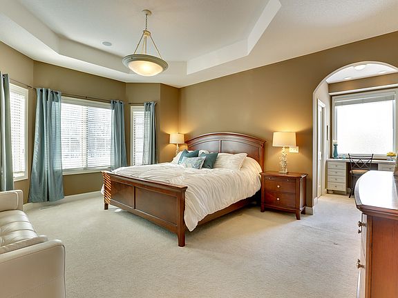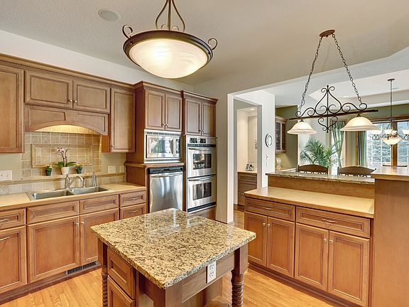Gorgeous custom rambler offers main-level living. Open floor plan with beautiful built-ins, high ceilings and/or tray ceilings. Fabulous windows and warm Sable stained wood. Gourmet kitchen plus breakfast bar. Formal dining room. Lower level walk out with huge amusement/game room and wet bar, 3 bedrooms, exercise room, hobby room. Beautifully landscaped. Huge deck that overlooks pond on property. 2 gas fireplaces, 3 car garage. 16 speaker sound system, security system. Don't miss this one!