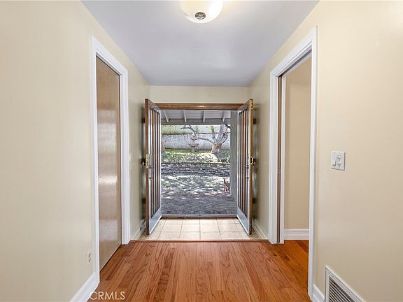 A Yorba Linda beauty! This charming single-story custom-built Ranch-style home offers 2635 sq. ft. of living space, and no HOA! Located in a sought-after neighborhood, the home sits on a beautiful and secluded .44-acre lot. Its professionally landscaped backyard garden is a serene sanctuary with a meandering brick path, and the private driveway leading to the 3-car garage can accommodate parking for an additional 4-6 cars. You walk through the wooden doors into an entry foyer, then into the spacious living room with gorgeous hardwood floors, high beam ceiling, gas-log fireplace and large windows offering both abundant light and a view of the inviting courtyard and gardens. The home features a master suite with plantation shutters and French doors to the patio and garden, 2 additional bedrooms with beautiful beveled glass windows in wood casings, and a hall bathroom. The 4th bedroom is currently set up as an office with a private entrance. The generously sized kitchen features an induction range and lots of storage; one nook with double doors could be converted to a coffee station or smoothie bar! There is a breakfast counter area for sitting, as well as a large dining area for a formal table, and French doors lead outside to the patio with a built-in BBQ. The large family room boasts a 2nd fireplace, and a generous laundry room features a sink and counter, a wall of storage cabinets and a door for patio access. The extra spacious 3-car garage has built-in cabinets and shelves, plus a workbench with multiple drawers. New asphalt shingle roof installed in 2020, New American Standard a/c condenser & compressor installed 2021, new blower motor for furnace installed 2022. The home is near the new YL Town Center with restaurants, shops, and the Public Yorba Linda library. A must-see property that has never been on the market before!