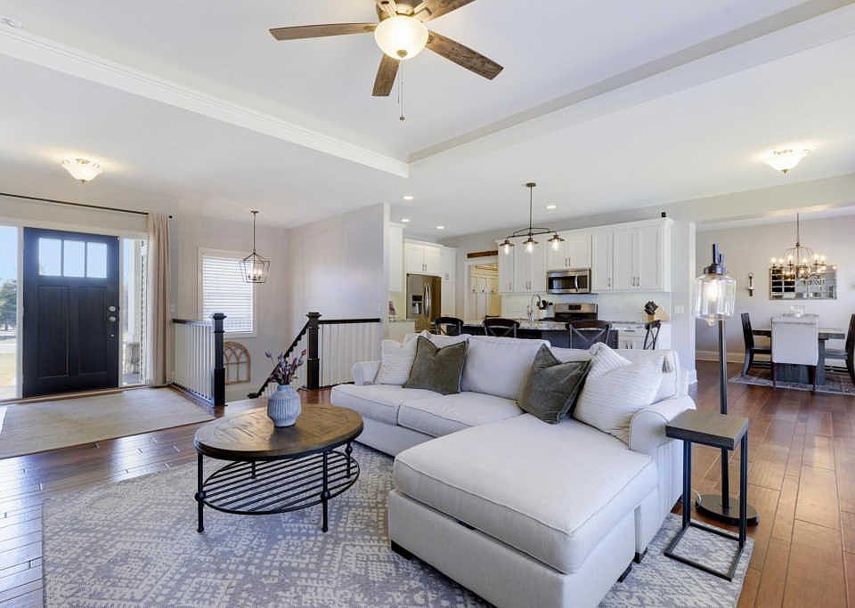 Your chance to live on a cul-de-sac with a 1.31 acre lot, this custom walkout rambler shows beautifully!A true Jewel! This home features an open main level, gorgeous living room complete with a gas fireplaceand custom built-ins, kitchen with large island, upgraded appliances, granite, enameled millwork, andmany custom cabinets! You will also find a main level Master bedroom, bathroom and laundry! Finishedlower level features family room w/ gas fireplace, custom seat benches, 3 bedrooms, 1 full bath, built-ins,and rough in for wet bar and a 4th bath. Beat the high lumber prices and long wait times and movein quick!