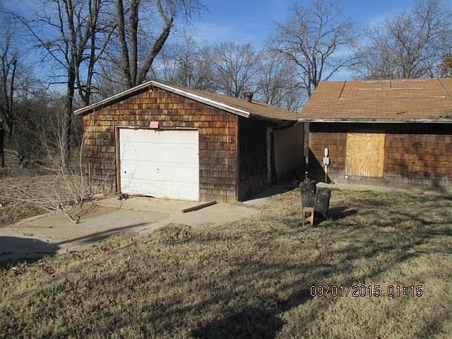 Bank owned foreclosed as is property. Price reduced. Rolling wooded 2.4 acres. Three beds two baths with detached garage, shed attached to garage, wood deck. Little Axe schools. Slide in electric range, breakfast bar and laminate floors in kitchen. Look at this price for 2.4 acres with a slab foundation. Could be your dream acreage with a little bit of vision. Screams "make me pretty again."
