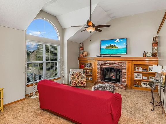 - Features: All Carpet, Built-in Features, Ceiling Fan(s), Fireplace