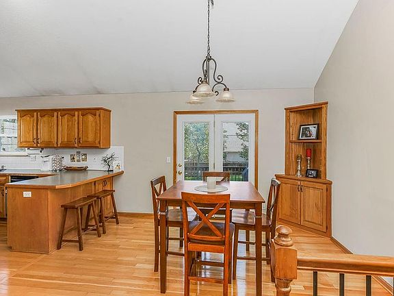 So much warmth in this lovely home! Open concept living room, kitchen and dining room. Living room features high ceilings, a beautiful picture window, and built ins surrounding a brick fireplace. Kitchen features hardwoods, large pantry, tons of cabinetry and counter space, updated sink and faucet, large island. Updated appliances that stay with the property. Primary bedroom is spacious with high ceilings. Primary bathroom features shower and double vanity with walk-in closet. Upper level has additional 2 bedrooms and a full bathroom with shower over tub. Finished basement has newer carpet and beautiful large windows to let light in also laundry closet and a half bathroom. Basement space is perfect for second living room, play area, office, non-conforming bedroom etc. Home features oversized 2 car garage. Large fenced in corner lot on cul de sac block. Neighborhood park and elementary school nearby. Improvements made include roof, exterior paint, HVAC system, main level interior paint, 6 windows, **Trim boards and carpeting need repair throughout home.** Deck stairs are not level. Slab at base of deck stairs needs to be lifted. Seller has bid from Affordable Mudjacking for $550.