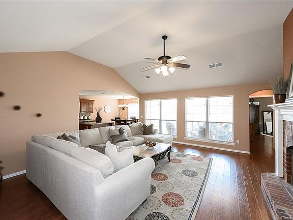 Pristine home with spacious kitchen open to living w/high ceilings and beautiful fireplace. Newer floors in living and master bedroom. Split bedroom plan, front bedroom has plantation shutters, corner lot, and full privacy fence.