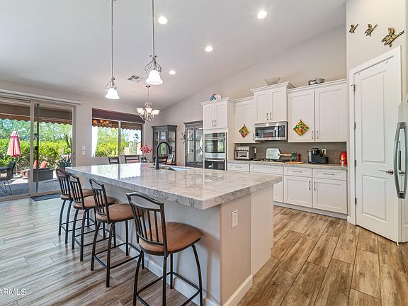 Rare opportunity to have a newer home (built in 2016) in the very desirable, established community of Rio Verde. This home has been impeccably maintained. The floor-plan is excellent, with open concept, high ceilings, 3 bedrooms, 2 baths, wonderfully appointed kitchen with large island, perfect for entertaining inside or flow out to the paver patios and spa. Primary suite is delightful with walk-in closet and full bath. Bedroom 2 & 3 have direct access to a shared bath. Powder room for guests. Always in demand a THREE CAR GARAGE & Deep enough for a truck! The side and rear yard extends beyond the privacy wall surrounding the patio area. Quick close possible. Nothing in this home is at the end of its useful life. No need to replace an old furnace, hot water heater, windows, roof, Kitchen cabinets, flooring or paint the interior or exterior of the home. Just move in and enjoy!