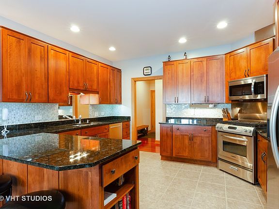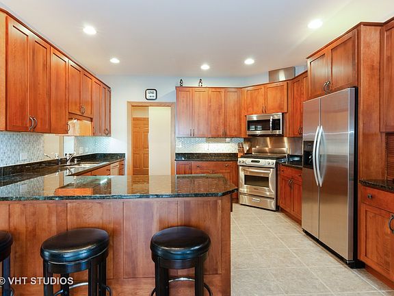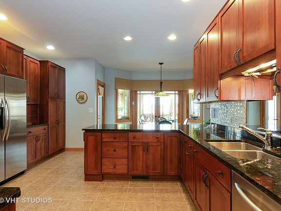 CONTINUE TO SHOW! CUSTOM BUILT RANCH on Acre with No Neighbors Behind. 4 1/2 CAR GARAGE, (4th Car is Heated and Currently a Work Shop) This Home Was Built With the Entertainer in Mind!! The Kitchen is a Chef's Dream with the SS Appliances, GRANITE Counters, Breakfast Bar, Wet Bar and French Doors to the SUN ROOM where the Guests can Mingle. The Sun Room has Knotty Pine Ceiling and Door to a Deck. The Family Room is situated off the Kitchen and has Cathedral Ceiling and Brick Fireplace ~ Also has a door to the Deck. Home Boasts 3 Bedrooms and Den on the Main Level and the 4th Bedroom in the FINISHED BASEMENT with a Wet Bar, Wood Burning Stove, 2nd Kitchen area and Loads of Storage!! The Laundry is on the Main Level, Master Suite has His and Her Walk in Closets, Master Bath with Double Sinks and Separate Shower. This Home Has GORGEOUS Cherry HW Flooring, Custom Millwork, Formal Dining Room, 2 Decks, WIDE CEMENT DRIVEWAY, Professionally Landscaped, Anderson Windows and Close to Tollway