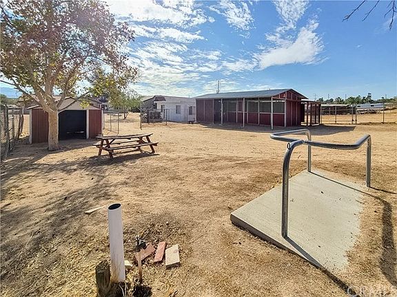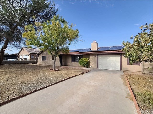 Turnkey horse property with paid off solar panels and over half an acre of land! The house has been recently remodeled with new vinyl flooring in the common areas, new carpet in the bedrooms and freshly painted inside and outside. Home also has tile roof, RV access and U-shape driveway. The nice landscaping in the front includes pomegranate and pistachio trees. In the living room you'll find a brick fireplace and in the kitchen freshly painted cabinets. The master bedroom leads off to a sun room and then to a huge backyard with a playground set, a wood shed, 2 horse stable, metal shed and small inground cement pool for the horses. Come take a look at this amazing house today!