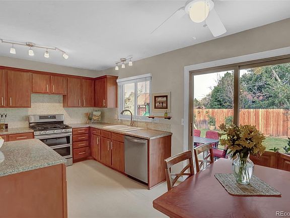 Beautiful ranch style home, minutes from Buckley Air Force Base and easy commute to I-225. Upgrades include kitchen cabinets, granite tile counters, tile backsplash, stainless appliances to include the range with double ovens and a new dishwasher. Main level master with access to the bath. Fully finished basement with a large family room, two secondary bedrooms and a full bath with a jetted tub, custom tile surround and wood tile flooring. Large backyard with 12x37 concrete patio and child play set stays. Newer furnace and roof and the home has a radon system and full sprinkler system. Oversized one car garage and extended concrete driveway for additional parking.