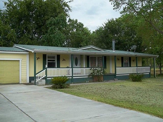 Come to the country and enjoy all nature has to offer. Acreage with a well anchored 53x28 double-wide mobile home with covered porches front and back. Very nice almost double-wide concrete driveway leads to your ''new'' home. Garage has door in front and back, making it a pass through.Refrigerator included. Range is self-cleaning, with a solid cooktop.Four (4) ceiling fans.Aerobic septic system. Metal roof covers most of home.Low tax rate.Easy access to Hwy 6, Hwy 35, and Gulf Freeway (I-45).