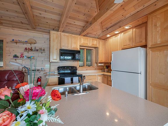 If SPECTACULAR views are at the top of your wish list, check out this wonderful home with 300 of frontage on Anvil Lake which is known for its crystal clear water, swim beach & year-round fishing. The sunsets are fabulous from the pier, the living room, the detached porch house or the adorable 2 person screened porch off the dining area, which will also be your favorite spot for morning coffee or buggy nights. Remodeled in 1994, the interior is inviting, casual, comfortable, wonderfully neutral & invites you to make it your own. The stone fireplace has a wood burning stove insert keeping the home cozy on chilly summer nights. If you sport a green thumb, youll love the irrigation system in the gardens. The pole barn/garage ensures plenty of room for vehicles & toys & even has a workshop area. Hike, bike & in winter, ski, the nearby Anvil trail system. Peaceful, quiet & conveniently close to town, this is a GREAT Move in Ready Northwoods Nest!
