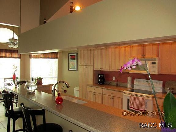 This well maintained 3/2 pool home is situated on a beautifully landscaped property. Home features a completely remodeled kitchen, all new Whirlpool appliances 2017. Heat pump replaced 2016, roof in 2006. 2017 added solar hot water heater, solar pool heater, and solar attic fan. Located conveniently in the Citrus Hills community of Cambridge Greens which is close to necessary conveniences. The pool and lanai area has an outdoo bathroom all set in a relaxing wooded park-like area. Take a look, you will be impressed. HOA fees are $120 per year.