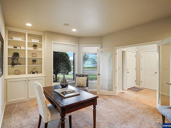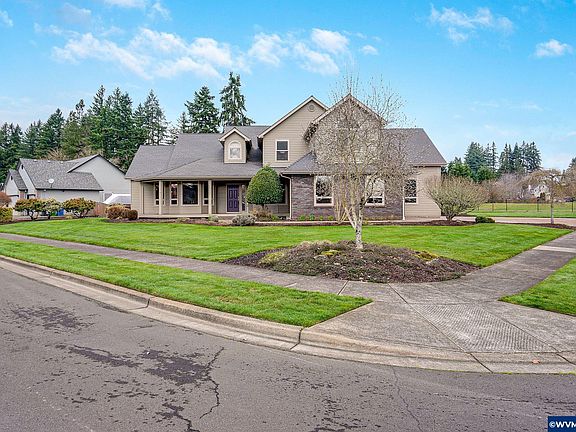 Custom, pride of ownership. On .44+ acre w/room for RV, views of open fields & privacy. Santiam River nearby! Large spacious rooms, vaulted '9 ceilings, Primary bedroom w/sitting area on main level, jetted tub, dual sinks, huge WIC & door to outside patio. Central vac. Office/den on main level, huge bonus room/flex room on 2nd level, maple floors and mature landscaping w/UGS, covered deck/patio.. 3 car oversize garage. Dead end street, desirable neighborhood.