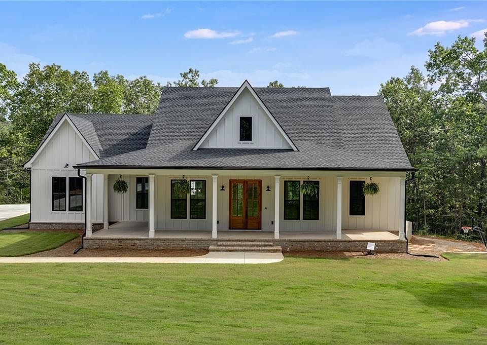 Elegance Meets Country in This Brand-New Farmhouse Retreat Step into the essence of modern country living. Completed in June 2023, this farmhouse seamlessly melds understated luxury with timeless rural charm, creating an ambiance of comfort wrapped in sophistication. As you walk in, you're welcomed by high vaulted ceilings, showcasing the strength and character of beautifully crafted beams. The home's board and batten siding gives a nod to classic craftsmanship, telling a story of attention to detail. The flowing open floor plan captures the vastness of country landscapes, balanced perfectly with a warm farmhouse design that feels both homely and elegant. The heart of the home, the kitchen, boasts gleaming marble countertops set against a state-of-the-art in-counter stovetop and sleek double in-wall ovens - a canvas awaiting your culinary creations. The living area invites relaxation, with its majestic fireplace stretching from floor to ceiling, framed by handcrafted bookcases. It's the ideal spot to unwind or entertain, bringing a sense of rustic grandeur. The master bedroom is a serene haven, graced by refined tray ceilings. Its adjoining bathroom exudes relaxation, featuring a deep soaking tub, a separate spacious shower, and double vanities. And for the fashion-savvy, the walk-in closet with custom built-ins promises organization with style. The home's thoughtful design also shines through in functional elements: stylish barn doors that lead to a dedicated office space and a generous walk-in pantry. The secondary bathroom, too, maintains this blend of utility and class with its double sinks. Set on a generous 10.7 acres of private woodland, this home promises both privacy and connection with nature. The smooth poured concrete driveway serves as a sophisticated path, leading to this countryside gem. For those looking at future possibilities, the home generously offers large secondary bedrooms. Moreover, a spacious unfinished basement, pre-framed to replicate the main floor plan, is ripe for your personal touch, presenting the potential for additional bedrooms and bathrooms. Positioned a stone's throw from city life, yet wrapped in the tranquility of the countryside, this residence promises the best of both worlds. Dive into a lifestyle where modern elegance dances gracefully with country simplicity. Welcome to your modern country retreat. [For tours or more details, donat hesitate to reach out.]