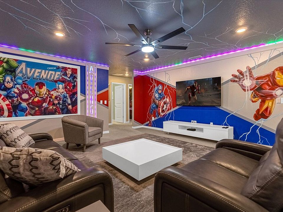 This spacious luxury home is located within the exclusive Windsor Island Resort, providing easy access to Orlando's theme parks, dining, and top shopping destinations. The home features seven spacious bedrooms with attached bathrooms, multiple living areas, a cozy loft, a gourmet kitchen, an expansive yard, and a private pool and spa. Guests have full access to amazing amenities, including a huge luxury clubhouse, pool, a free-to-play arcade room, and much more. Check yourself into this luxury family home and be greeted with bright, sun-filled living, soft comfortable furnishings, and a spacious open-plan design with room for everyone to spread out and have their own space. Relax on the lounge after a day spent at Disney and stream all your favorites on the big screen smart TV, the perfect place to gather together for a cozy movie night in. Step into the fully equipped kitchen to cook up breakfast, lunch, and dinner with all the appliances, cookware, and utensils you could need. Off the kitchen is the generous dining room that caters to guests with additional seating up at the sleek breakfast bar. Don't feel like cooking? Treat your guests to a night out with countless restaurants just minutes away. Slide open the glass doors to create a seamless indoor-outdoor space that steps out onto the covered lanai, alfresco dining, and a gorgeous resort-style pool and spa overlooking the lake, your own private oasis. Guests have full access to amazing amenities, including a huge luxury clubhouse, pool, a free-to-play arcade room, and much more. Located within the exclusive Windsor Island Resort, this home provides easy access to Orlando's theme parks, dining, and top shopping destinations. Enjoy the convenience of being close to all the excitement Orlando has to offer while having a peaceful retreat to return to. This home offers a seamless check-in experience. Smoking and parties are not allowed, ensuring a peaceful environment for all guests.