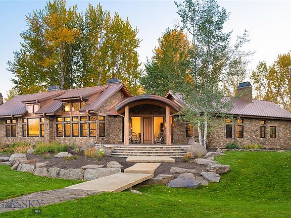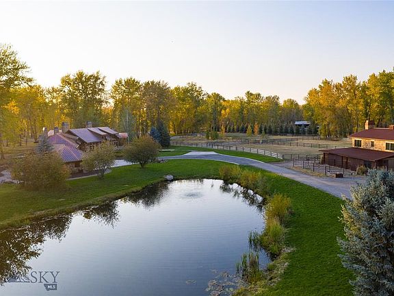 Extraordinary, 5700sf, captivating home on the Gallatin River. Gated, private, w/ lush landscaping & verdant forest, trout-stocked pond, meandering creek and dramatic Bridger Mountain views. This sensational, 3B;4B + office main house w/ stone & glass exterior, copper roofs & gutters, ALL NEW everything, inside and out, features: gorgeous, reclaimed White Oak floors, chef's kitchen with top-of-the-line LaCornue range, Gaggenau fridge/freezer columns. Glass telescoping doors open to the huge, covered & heated, outdoor patio w/ full kitchen, pizza oven, 12-person hot tub. Guests will clamber to stay in the 2200sf, 2B;2B guest quarters atop the barn or the cozy, 1B;1B, turn of the century, cabin. 2500sqft heated equipment barn, outdoor riding arena, 5-stall barn w/rubber mats, auto-waterers, wash stall & tack room, fenced pastures: ideal for the horse enthusiast, angler and entertainer! All furniture, accessories, linens (all brand new) in the main house convey w/ an acceptable offer.