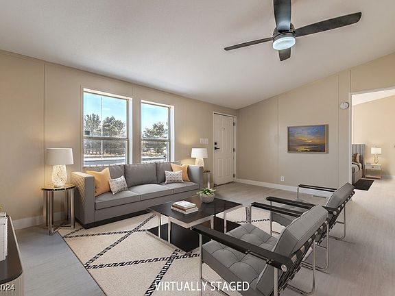 Welcome to this gorgeous remodeled 3 bed 2 bath manufactured home on an acre! This home has been fully remodeled and features a newer roof, new quartz countertops, new waterproof flooring throughout the living spaces, new plush carpet in the bedrooms, new toilets, new plumbing fixtures, new light fixtures, new baseboards, fresh paint inside and out. Backyard is fully chain link fenced. This home is move in ready and waiting for you to call it home! Please call today to schedule your private tour!