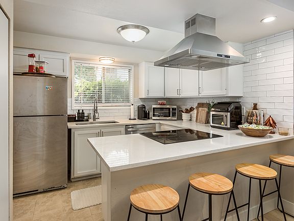 Wood-burning fireplaceStylish remodeled kitchenNew dishwasherNew vinyl-plank flooringEnd-unit locationBright open-floor planRange hood