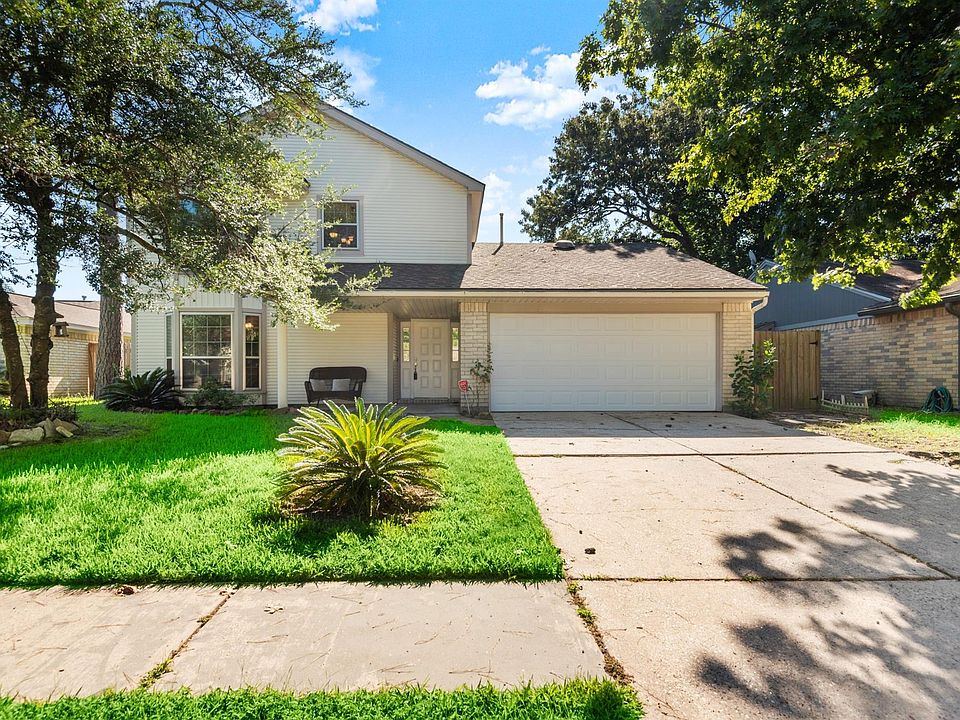This spacious 4 bedroom, 2.5 bathroom home has beautiful wood floors, neutral paint throughout, 1 bedroom (or study) and a 1/2 bath located downstairs, and 3 bedrooms with 2 full bathrooms upstairs. The kitchen features stainless steel appliances- fridge included, breakfast area w/ laundry & backyard access. The living room features a fireplace, high ceilings and good natural light. Storage shed in back yard. 2-car garage. Easy & quick access to shopping, banking, schools, and restaurants. Approx. 20 minutes to Bush Intercontinental Airport.