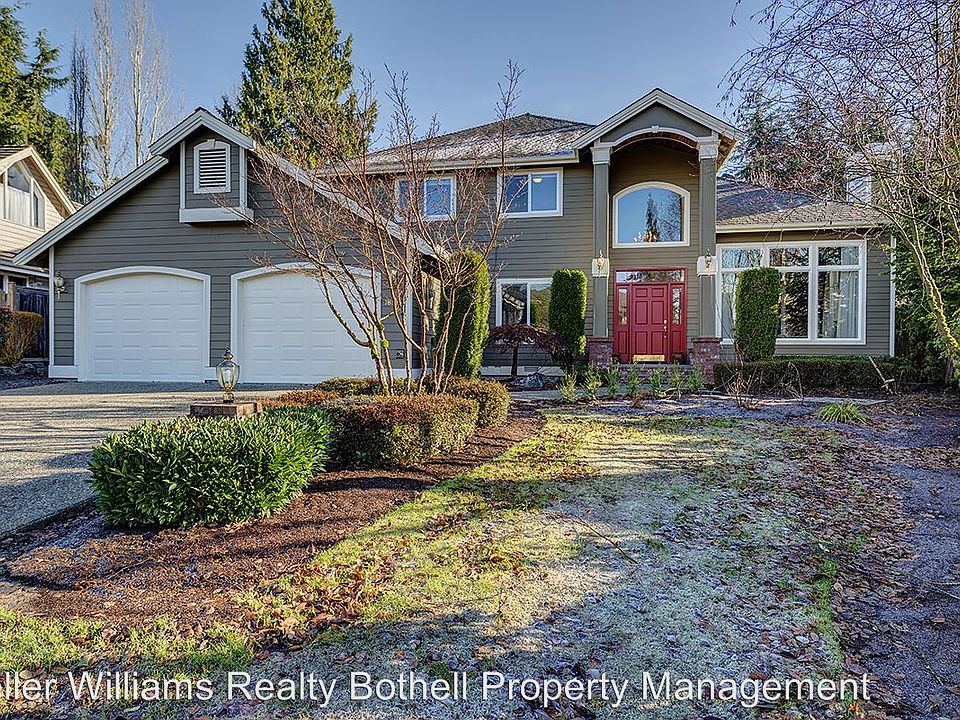 Three Bedroom Oasis in Bothell - Dramatic and immaculate, this three bedroom plus den home has it all. You'll be wowed by the dramatic entrance and formal living room with gas fireplace. Formal dining room will make meals a delight. Kitchen with hardwood floors opens to family room with second gas fireplace and windows that look out to the private back yard and patio. Upstairs are three bedrooms. The master bedroom is large with a walk in closet and an en-suite 5 piece bath. A second bedroom also has a walk in closet. Downstairs is an office/den. Attached garage with room for three cars. No pets. No smokers. Good credit. (RLNE2456688)