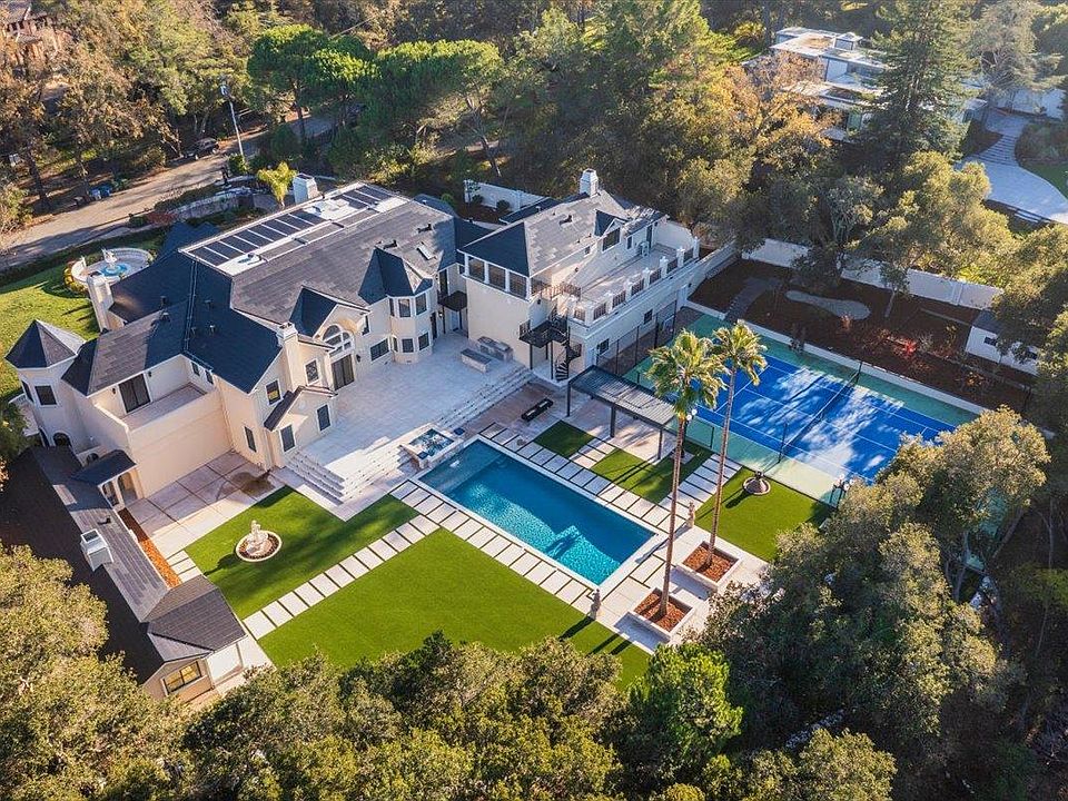 Located in the heart of Silicon Valley, this extraordinary Monte Sereno estate represents a rare fusion of grand scale, refined elegance, & unparalleled convenience. Recently transformed through a $10M+ comprehensive renovation, the residence evokes the timeless grandeur of a stately European estate. Set on 1.37 pristine, flat acres, it offers approximately 17,000 square feet of impeccably curated living & storage space beneath a brand-new $1M Tesla solar roof. The main residence features ten bedrooms & eight bathrooms, complemented by a private guest house & separate apartment. Resort-caliber amenities abound, including a ten-car garage, underground shooting range, indoor basketball & racquetball court, USTA-regulation tennis court, resort-style lap pool & spa, expansive great room, home theater, private elevator, two formal libraries, and a gym/nursery. Taken down to the studs, every detail has been reimagined w/ uncompromising quality new Jeld-Wen windows & doors, all-new appliances, plumbing, & electrical systems. Secluded within a private enclave & surrounded by other prestigious estates, the property offers sweeping mountain & city light views. This is a truly iconic Silicon Valley offering where sophistication, scale, & location converge to create an exceptional lifestyle.