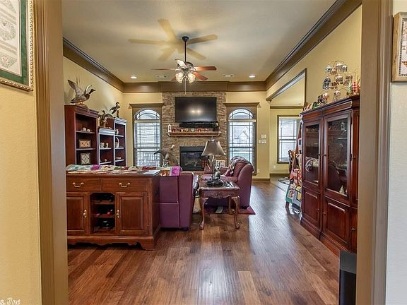 Country feel with city minutes away! This elegant (1 owner) 4BDRM 2 Bth home features a split floor plan with a Greatroom w/gaslog Fireplace, Formal Dining with your Kitchen/ Breakfast area combo. SS Appliances;Custom cabinetry,bronze fixtures /granite countertops with island. Tile/Wood floors through out. Spacious Master with jetted tub/shower/walkin closets. Patio with additional concrete stained covered porch; Lawn is established and is one of the few flat lots in this subdivision Generator conveys.