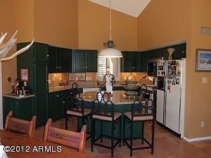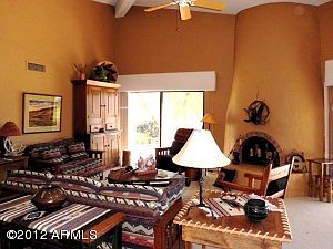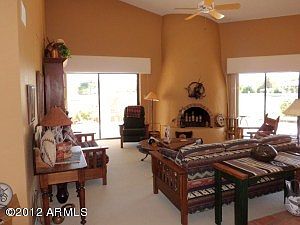 Charming Home on the White Wing golf course at Rio Verde. Beautiful Saltillo tile adds to the charm of this open floor plan home. Kiva style fireplace in Great Room that includes formal dining and open kitchen with island seating. Quartz countertops. Large Sliding doors open to covered Patio. Newer AC's/Water Heater and Dishwasher.Recently painted and recarpeted. Master has walk in closet. Wraparound patio has golf and mountain views & BBQ. Mature landscaping and citrus trees. 2 Car garage w/golf cart area.