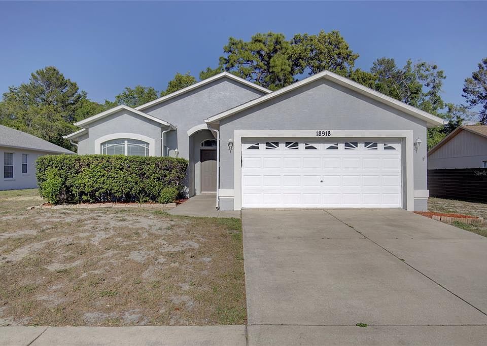 Located in the Rainbow Oaks community, this single-story block construction home features an oversized kitchen with extensive cabinetry and counter space that opens to a vaulted-ceiling living and dining area with tile flooring throughout the main spaces. A split-bedroom layout offers privacy, and the rear screened lanai provides a covered outdoor area overlooking a backyard framed by mature trees. With no HOA and situated in Flood Zone X, the home includes ceiling fans, a breakfast nook, and an attached two-car garage. Conveniently positioned, the property is approximately 10 minutes from Hudson Beach Park, 12 minutes from SunWest Park, 15 minutes from Werner-Boyce Salt Springs State Park, under 50 minutes from Tampa International Airport, and about an hour from Clearwater Beach.