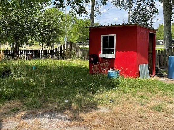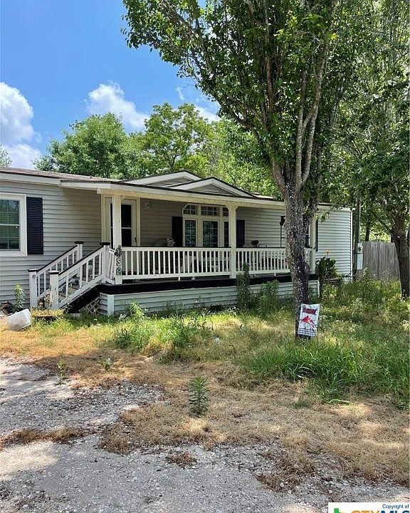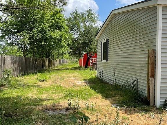 Nice 3 bedroom, 2 bath mobile home that sits on .94 acres and a large red barn storage in the back. A great piece of property with many mature trees and a lot of potential. The home offers a spacious living room, dining room and open kitchen. Laminate wood floors throughout, 2" faux blinds in bedrooms. Master bath has his and her sinks and a large stand up shower. A good size utility room with shelving off the master bathroom. Ceiling fans in most rooms. Enjoy a morning cup of coffee or you evenings on the large front porch or in the back under the large covered patio. Plenty of room to add and entertain. Plans to remove all the furniture and belongings, mow, paint and replace any area's of flooring that are needed. This home also offers owner financing through 21st Mortgage. Make an offer as is or wait for the beautification. This property will not last long!