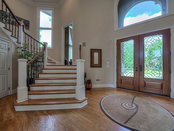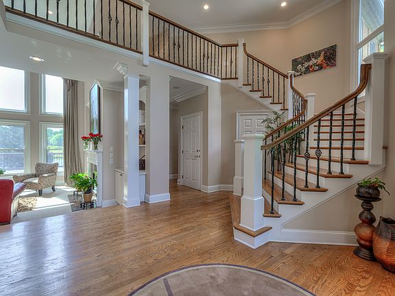 Exquisite executive home in Davidson in desirable River Run subdivision. This expansive cul-de-sac home, affords long range golf course views of hole #1, and a serene lake. The palatial 2 story entry with spiral staircase will take your breath away. You'll notice the flowing, open concept formal living, dining and sunken family rooms, which flow effortlessly into the large kitchen. The master bedroom is perfectly tucked away on its own wing of the main level, with direct access to the deck and tranquil lake views. Other highlights include, an octagonal music room, home theatre and craft/play room. Large open basement, with yet another fireplace, rec room and gym area adds to the overall draw of this expansive home. With over 6300 square feet over 3 levels, this home is perfect for entertaining!! There's an unfinished 3rd floor which could add an additional space! Exit to the large expansive deck with Trex - decking or relax in the screened-in gazebo.