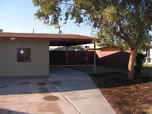 Remodeled block home, situated on a 1/3 acre irrigated zoned horse property. Backyard is enclosed by 6 ft. Chainlink fence with an RV gate. Has 30' x 10' covered patio. Frontyard is grass with shade trees and fenced with chain link fence. Wood fence with gate separates front from back with covered carport. Remodeled and shingle roof too.