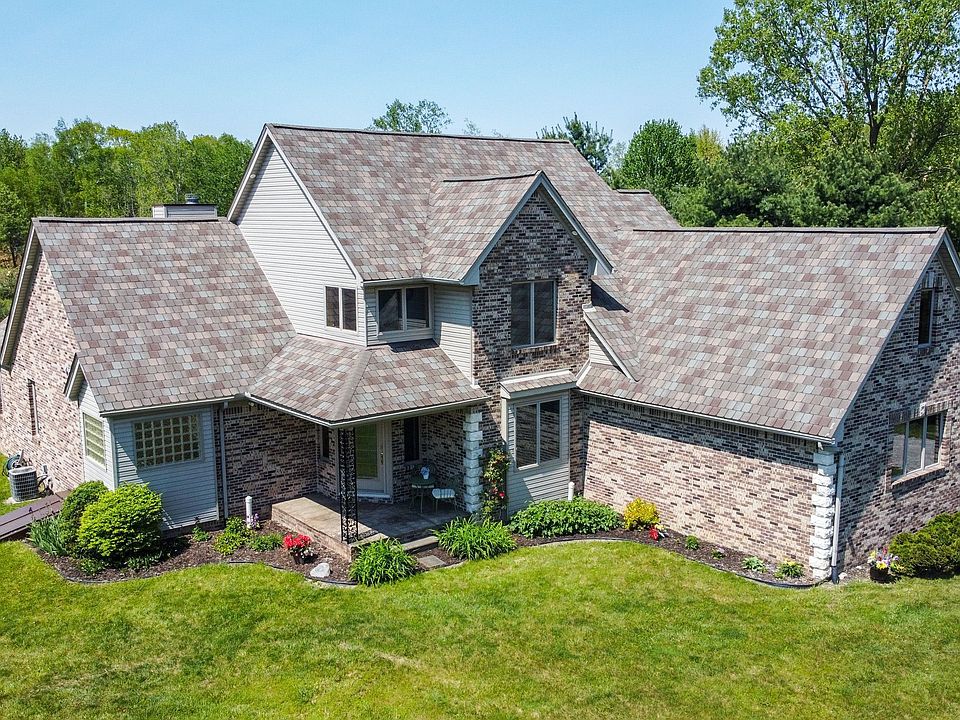 Fabulous well maintained all-brick and stone home sitting on a large 1.65-acre lot with a new 30x50 pole barn (2020)! This charmer is full of character with its arched doorways, vaulted ceilings, skylights, open loft with railing, beautiful hardwood floors, and black wrought iron railings. The great room features 17 ft. ceilings with skylights, a gorgeous recently updated gas fireplace, and a door wall to the impressive and expansive raised patio. The huge eat-in kitchen is great for entertaining with a large dining area boasting soaring ceilings with more skylights, an island, granite countertops, and newer stainless steel appliances (2019). The versatile open dining room also works well as a bright and airy home office. Looking for a sprawling master suite? You found it! The generous master bedroom abounds with enough space to accommodate any size of bedroom furniture sets. The doorwall provides additional natural light and access to the raised patio. Sizeable master bath with jetted tub, updated glass shower door, large vanity with a single sink but is plumbed for double sinks. Upstairs, you’ll find 2 spacious bedrooms (one with access to an unfinished bonus room), a full bath, and a den/office area with an open loft. Convenient first-floor laundry and pretty powder room. Spacious basement for plenty of storage. Oversized 3 car garage with extra 12x8 area. Fantastic county park just down the road offering walking trails on the river, mountain biking, disk golf, tons of wildlife, a sledding hill, and much more! A treasure for any outdoor enthusiast. Extras include exterior soffit lights, a firepit area, and an expanded asphalt pad. You won't want to miss this one! Schedule your private showing today!
