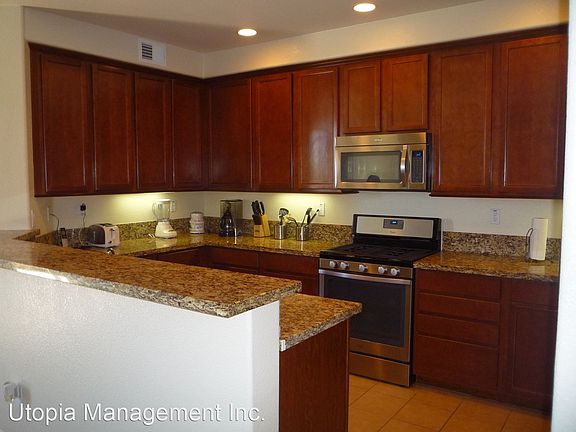Upgraded Tri-level Townhome in Otay Ranch - Built in 2012 and completely upgraded, this air-conditioned tri-level end unit townhome with windows on two sides also has a spacious bonus room on 1st floor and gated front- entry patio. Features include granite counter tops, stainless steel appliances including gas range-oven, refrigerator, dishwasher and built-in microwave. You'll enjoy the large living/dining room with niche for your entertainment center and access to balcony, a big Master bedroom with vaulted ceiling and walk-in closet and large master bath with dual-sink vanity and tub/shower combination, laundry room with full-size HE washer and dryer, recessed lighting, ceiling fans and a 2-car attached garage. Flooring is carpet and tile. The unit is wired for security system, has security cameras This home faces the exterior of the complex, is close to community pool and spa, and across the street from large local park. One small pet is allowed with restrictions. Trash service included in rent. DRE 01197438 (RLNE2864651)
