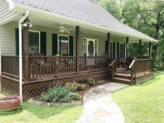 40 acres, a beautiful 3 bedroom 2 story home, and live water! 8x42 covered front porch. Native stone fireplace in the spacious living room. Galley style kitchen featuring oak cabinets, snack bar and new counter tops. Living room and dining room patio doors opening onto the inviting covered deck that overlooks Indian Creek. The main floor master suite adjoins the utility room. 2 more bedrooms and a full bath upstairs. Downstairs the walkout basement holds the family room, office or 4th bedroom, another full bath, and 1 car garage/storage room. Central heat and air plus an outside wood furnace. The property joins National Forest at one corner. 10-15 acres are open with the balance in woods. 2 ponds, multiple springs and branches. Outbuildings include a 16x24 storage and 42x80 shop/barn