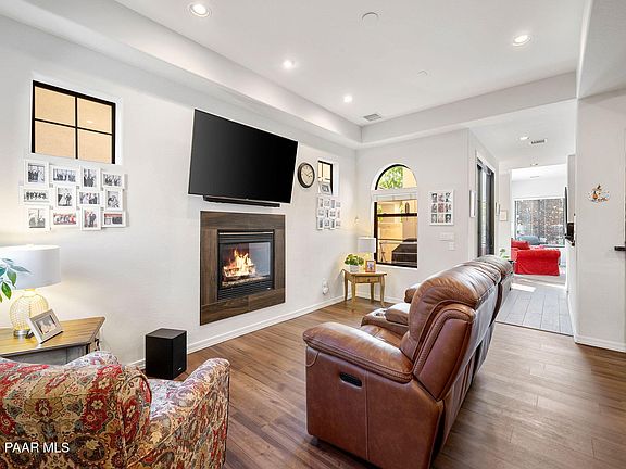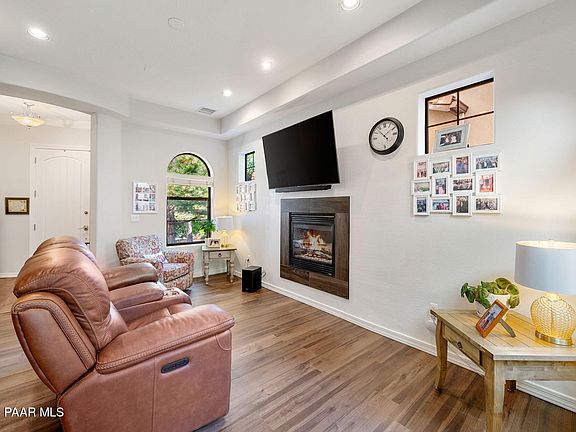 Welcome to your ideal Prescott townhome w/ NEW PAINT & CARPET! Placed in a quiet neighborhood w/ access to hiking trails, this charming home offers both tranquility & activity. The inviting living room features a cozy fireplace, vaulted ceilings, & sleek laminate flooring. The kitchen shines w/ ample counter space, wall oven, & granite counters, flowing into a formal dining area perfect for gatherings. Enjoy a versatile family room complete w/ an office nook. Retreat to the spacious primary bedroom, boasting a private patio, additional office nook, & a large walk-in closet. This Prescott townhome combines comfort, functionality, & an unbeatable location, making it an ideal choice for those seeking a balanced lifestyle. Don't miss the opportunity to make this remarkable property your own!