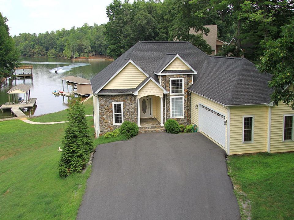 Waterfront contemporary with true-easy access to the dock and a low maintenance exterior. Convenient lake location with area restaurants, shopping, entertainment and medical needs, all within a short drive or boat ride. Location, privacy, gentle slope, quiet cove, no HOA!