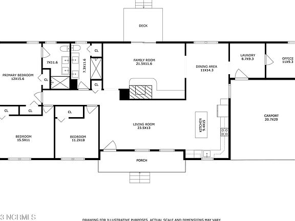 Updated throughout with amazing touches! Single level brick ranch style home. Offering over 2000 sq.ft. and 1.42 acres outside of the city limits in a very desirable location this home is a must see! As you walk in you are welcomed with a formal living room and open floor plan concept allows you to look right into the kitchen with the oversized 6ft island and stainless steel appliances. 3 full size bedrooms and 2 full bathrooms with spa like walk-in tile showers and double sink vanities. Separate you will enjoy a family room with fireplace overfilled with natural light coming from the sliding glass door that takes you right to the back deck. Bonus/Flex room is located off the laundry room that could be turned into a 4th bedroom if desired. New roof, new windows, new HVAC, new hot water heater, and flooring all installed in 2023! Don't wait to come see this stunning home today as it will not last long on the market!! Seller is offering a 1 year home warranty. Termite warranty in place and can be transferred to buyer at closing.