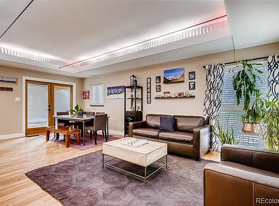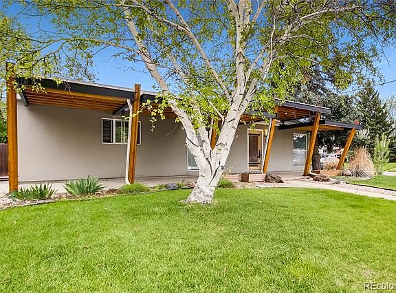 This mid-century modern in the desirable Virginia Village has it all. Spectacular outdoor entertaining space to the custom details inside. As you enter the home you are drawn to the open stairwell that provides ample natural light to the basement. Smart features throughout such as an electric coat closet, Ecobee thermostat, Ring video doorbell, Wemo light switches, and Nest CO/smoke detectors. Modern finishes such as shelving and custom doors. Entertain family and friends in your gourmet kitchen featuring stainless steel appliances. The lower level boasts a fully finished basement with rec. room, wet bar and master suite with an attached bath and massive walk-in closet. The covered back porch lends itself to entertaining with a large area for seating and built-in hot tub. The custom storage shed matches the exterior of the home. Convenient access to to I-25, and only a 5 minute walk to the Colorado Light Station, movie theatre, restaurants and Highline Canal. Welcome home!